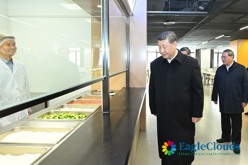 在学校食堂,习近平察看就餐环境、菜品种类等,叮嘱一定要确保学生饮食的安全和营养。离开学校时,师生们一齐向总书记问好,习近平勉励孩子们惜福奋进、积极向上,与雄安新区一起成长,与中国式现代化同步发展。