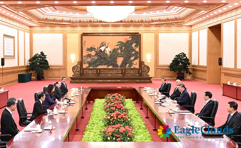 4月10日上午,中共中央总书记习近平在北京会见郑丽文主席率领的中国国民党访问团。新华社记者 谢环驰 摄